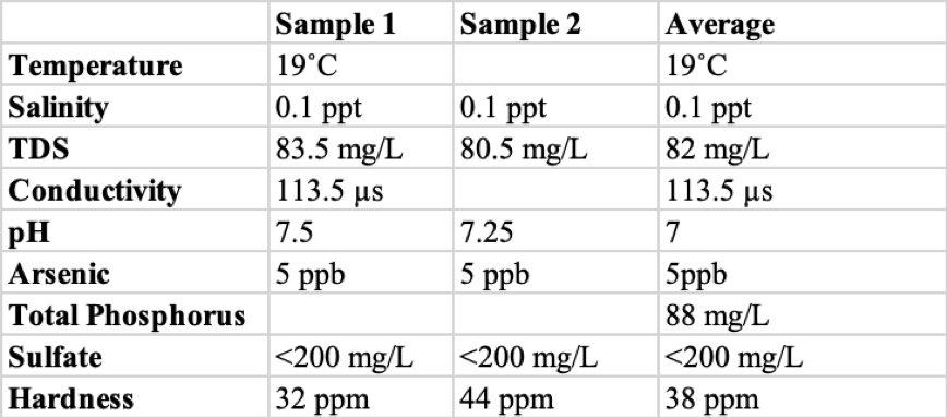 Table 2. Water quality data on the ACF basin at GPS position 30°42’19.66″ N -84°50’44.66″.  Total phosphorous and average pH obtained from river data provided (experimental pH included in average).